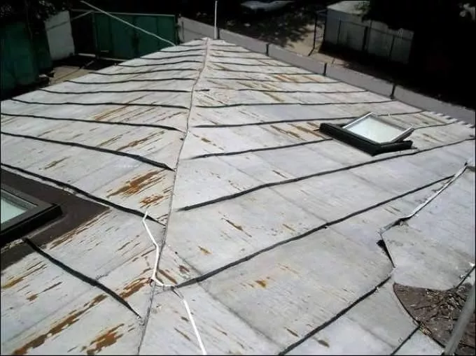 Первый этап ремонта фальцевых крыши – определение причины и места протечки. Проверяют кровлю 2 мастера. Один находится на крыше, а другой – на чердаке, где просматривает следы протечек и стуком дает об этом понять другому. Второй мастер делает пометки проблемных мест маркером.
